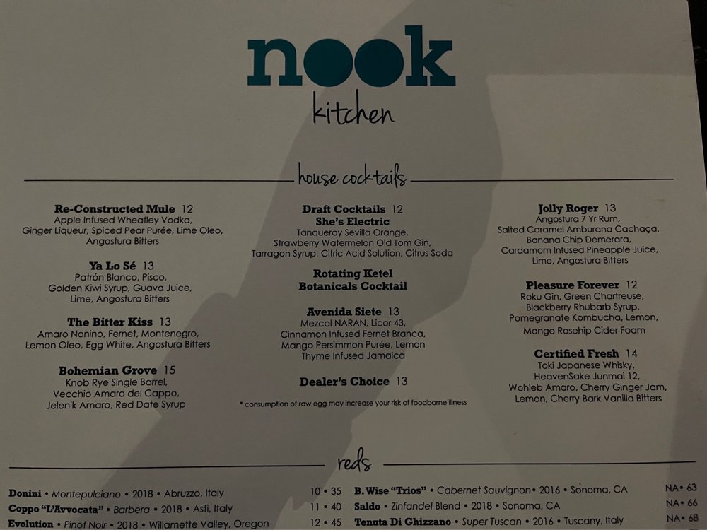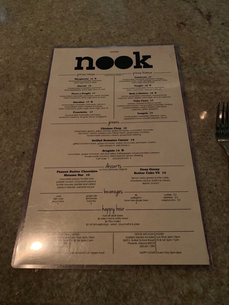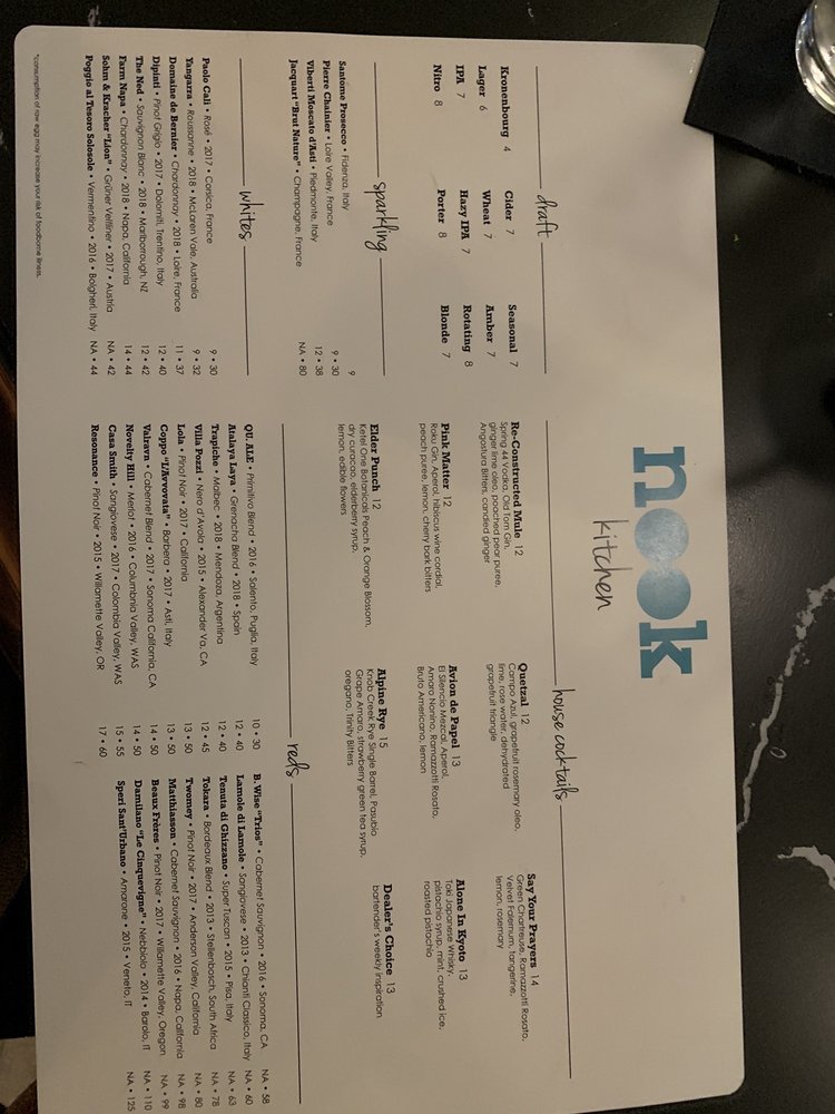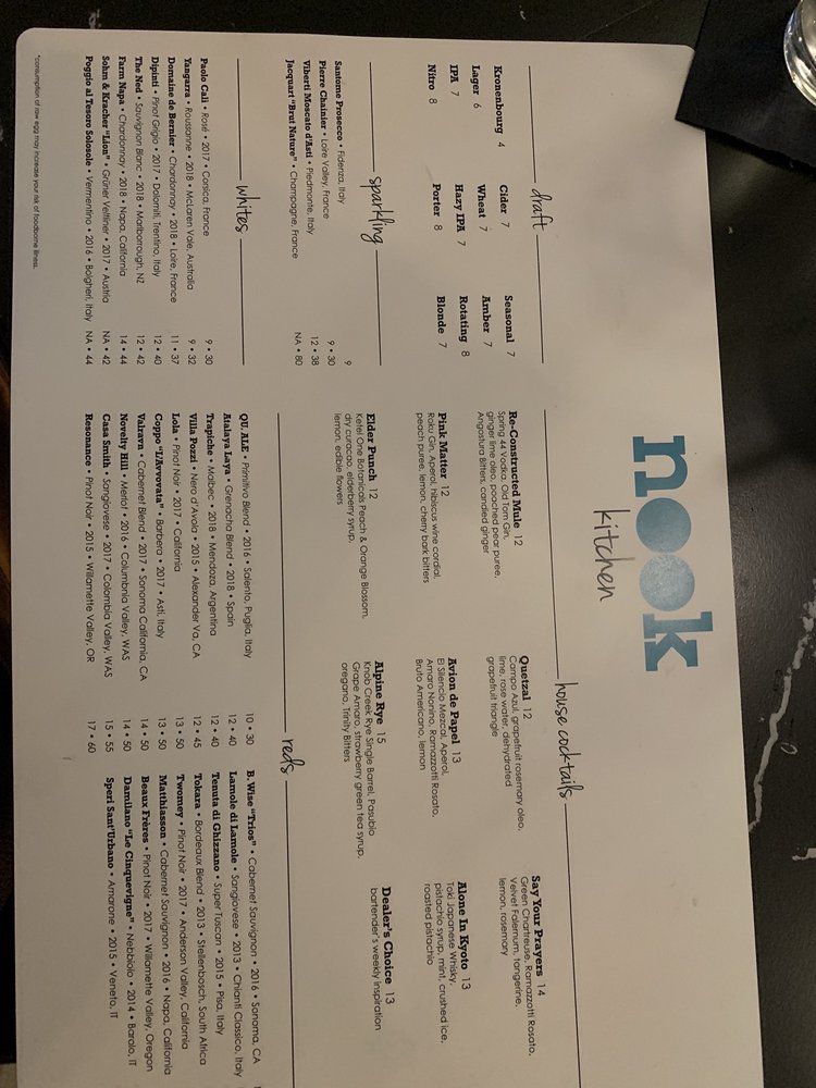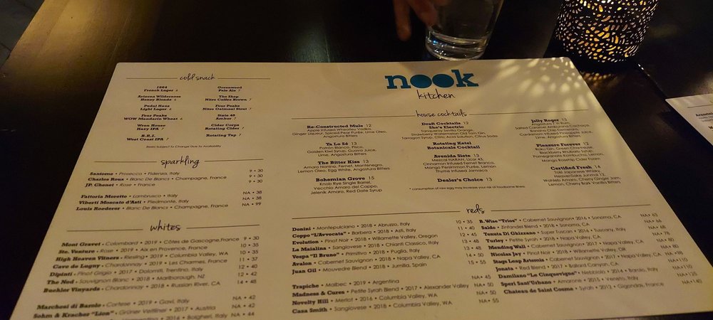 Located in Phoenix, Arizona, Nook Kitchen offers a casual yet classy dining experience with a variety of vegan and vegetarian options. The restaurant features a full bar with unique cocktails, happy hour specials, and a cozy atmosphere. Customers rave about the fresh and flavorful dishes, such as the Chicken Piccata and Bolognese pasta, highlighting the quality of ingredients and skilled preparation. The friendly staff provides excellent service, creating a welcoming and enjoyable dining experience. The restaurant's trendy decor and lively atmosphere make it a great spot for a group gathering or a date night. Whether you're looking for a relaxing dinner or a fun happy hour, Nook Kitchen is the perfect place to enjoy delicious food and drinks in a charming setting.
